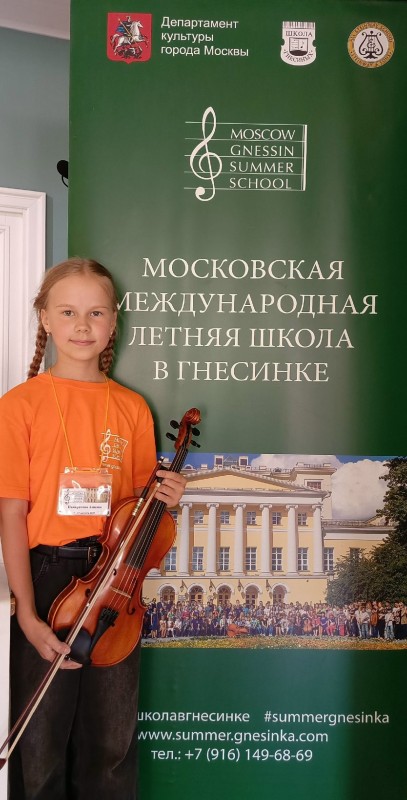 С 7 по 17 августа 2025 года ученица 4 класса отделения «Струнное» - Амалия Панкратова проходила обучение по индивидуальной программе в X Международной «Летней школе» на базе Московской средней специальной музыкальной школы имени Гнесиных. Пять интереснейших уроков насыщенных творчеством, трудом и радостью очень понравились Амалии. Преподаватель Ариадна Владимировна Анчевская - Заслуженная артистка Российской Федерации, Доцент Московской Государственной Консерватории им. П.И. Чайковского, преподаватель по классу скрипки МССМШ им. Гнесиных отметила трудолюбие Амалии и пожелала ей дальнейших успехов.