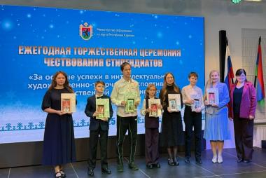 25 декабря 2025 года в Петрозаводске прошла ежегодная торжественная церемония чествования стипендиатов «За особые успехи в интеллектуальной, художественно-творческой, спортивной и общественной деятельности», утвержденная Министерством образования и спорта в целях поддержки творческих, интеллектуально развитых, активных, социально ответственных детей. В 2025 году на рассмотрение экспертного совета поступила 91 заявка из 16 муниципальных образований республики в номинациях: