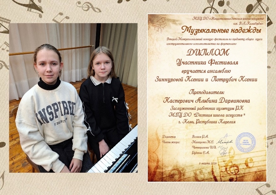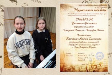 Ансамбль Зиннурова Ксения и Потрубач Ксения - Диплом участника фестиваля;