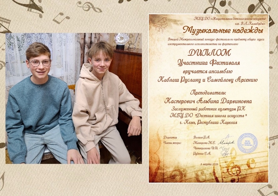 Ансамбль Каблаш Руслан и Самойлов Арсений - Диплом участника фестиваля;