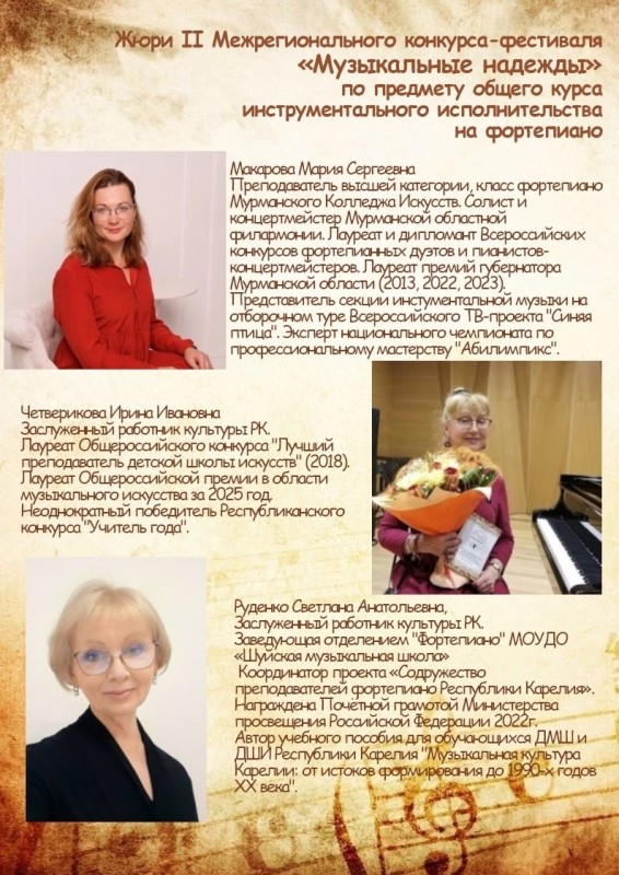 Поздравляем участников II Межрегионального конкурса - фестиваля "Музыкальные надежды" по предмету общего курса инструментального исполнительства на фортепиано.