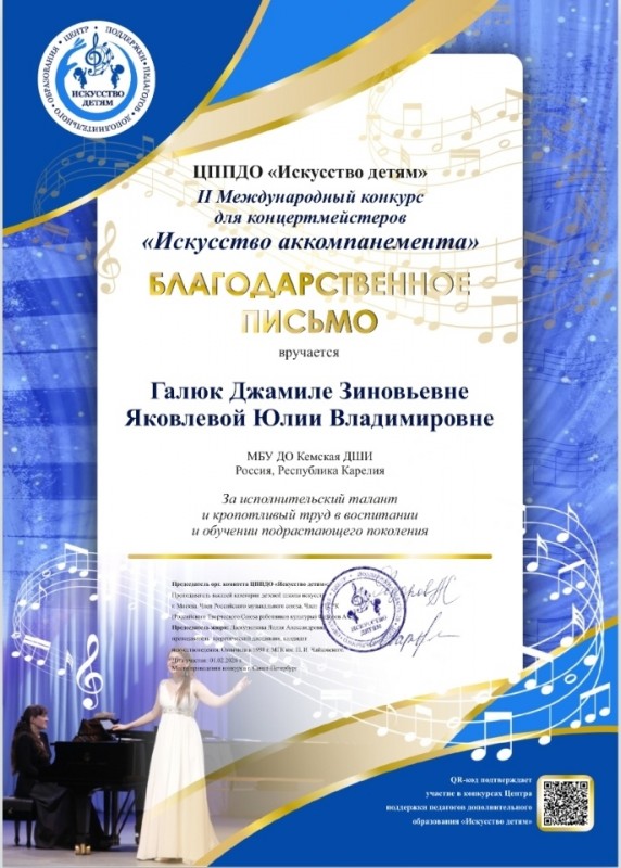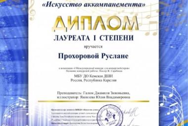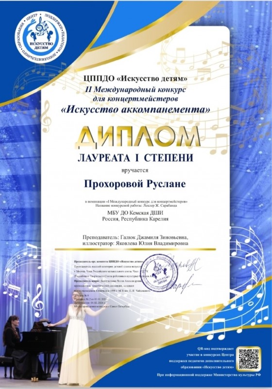 Поздравляем! Прохорова Руслана - Лауреат I степени II Международного конкурса для концертмейстеров «Искусство аккомпанемента», г. Санкт-Петербург (заочный формат). Иллюстратор - Яковлева Юлия Владимировна
